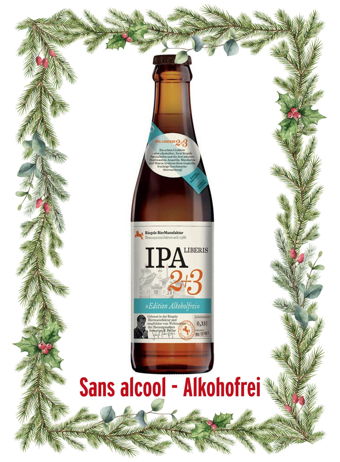 Une IPA sans alcool étonnamment aromatique, où les houblons fruités libèrent des notes d’agrumes, de fleurs et une amertume douce mais présente. Vive et moderne, elle apporte au calendrier une gorgée lumineuse, comme une petite étincelle hivernale qui réveille l’esprit de Noël.